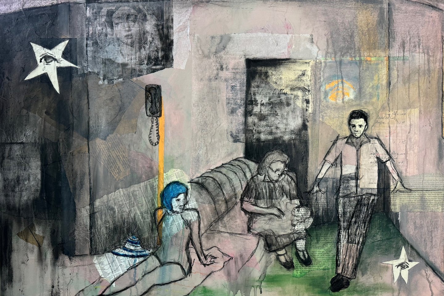 Mixed Media on vintage ledger paper.