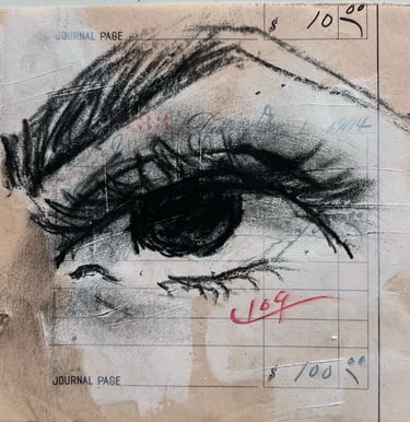Gesso and charcoal on vintage 1901 ledger paper.