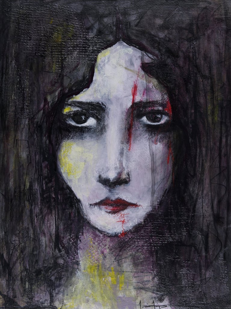 Mixed Media on watercolor paper.