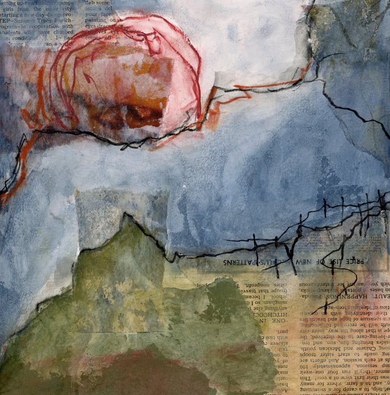 Mixed Media on watercolor paper mounted on cradled wood panel.